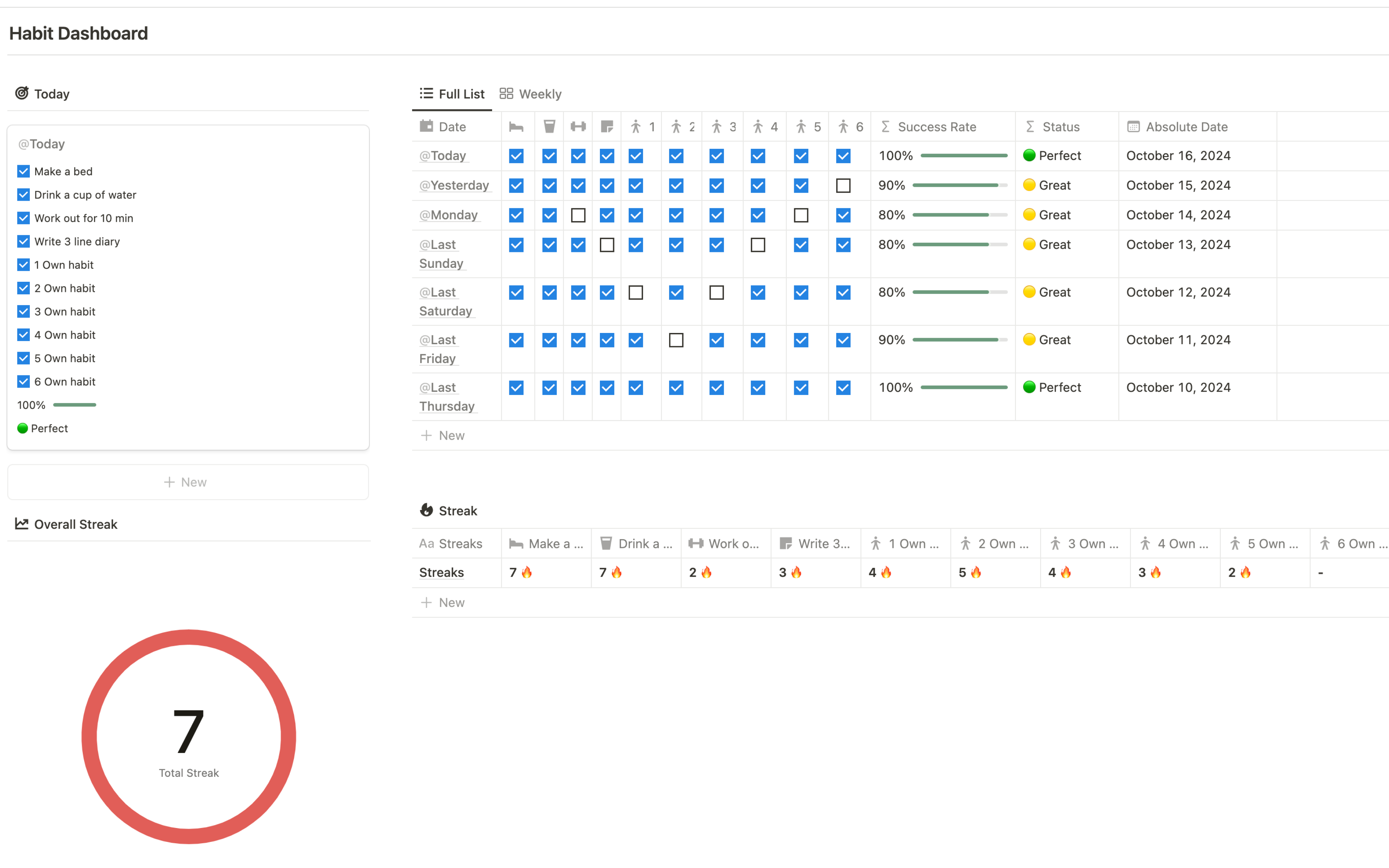 - Overall Streak tracking