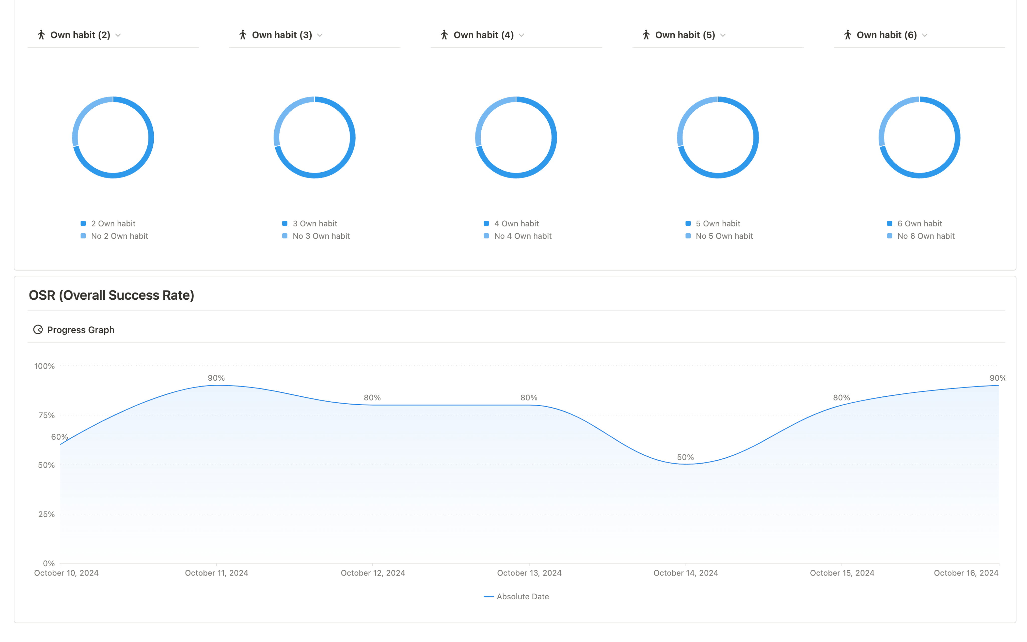 - Success rate charts for each habit